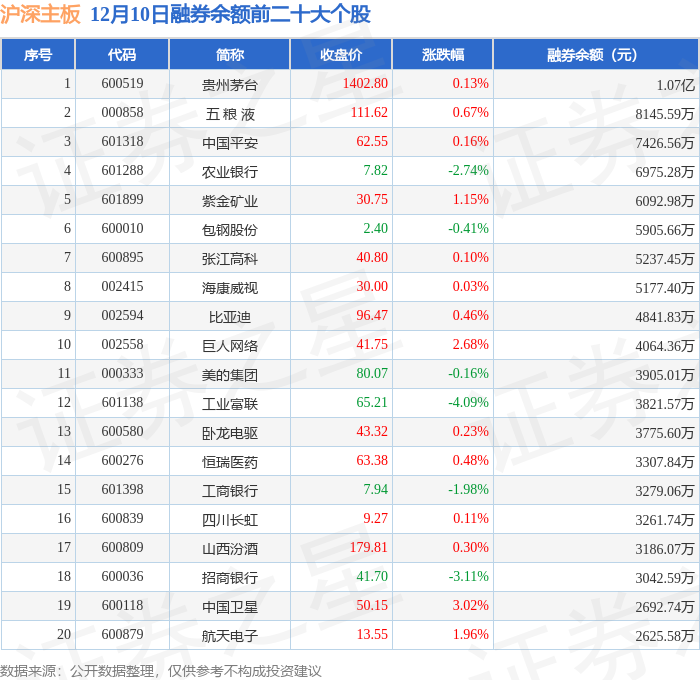 沪深主板融券余额前三分别为:贵州茅台(600519)融券余额1.07亿元、五 粮 液(000858)融券余额8145.59万元、中国平安(601318)融券余额7426.56万元,前20具体见下表:
