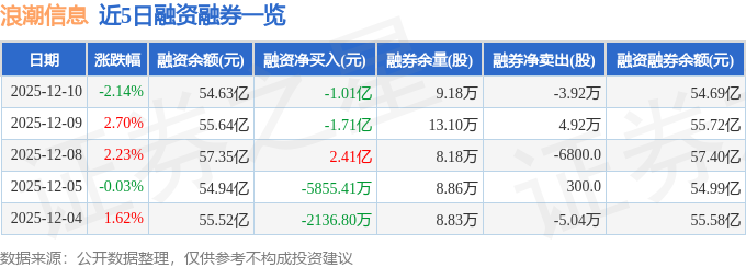 浪潮信息融资融券信息显示,融资方面,当日融资买入4.54亿元,融资偿还5.55亿元,融资净偿还1.01亿元。融券方面,融券卖出500.0股,融券偿还3.97万股,融券余量9.18万股,融券余额578.34万元。融资融券余额54.69亿元。