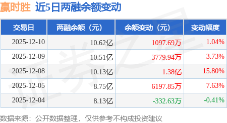 证券之星消息,12月10日,赢时胜(300377)融资买入2.58亿元,融资偿还2.47亿元,融资净买入1135.91万元,融资余额10.61亿元,近3个交易日已连续净买入累计1.87亿元。