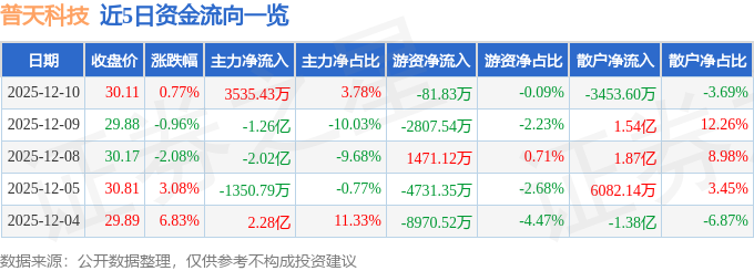 12月10日的资金流向数据方面,主力资金净流入3535.43万元,占总成交额3.78%,游资资金净流出81.83万元,占总成交额0.09%,散户资金净流出3453.6万元,占总成交额3.69%。
