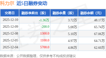 证券之星消息,12月10日,科力尔(002892)融资买入562.65万元,融资偿还396.9万元,融资净买入165.75万元,融资余额2.94亿元。