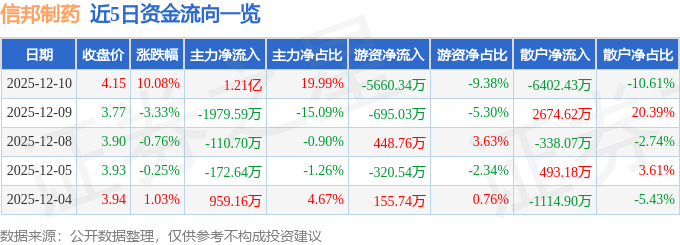 12月10日的资金流向数据方面,主力资金净流入1.21亿元,占总成交额19.99%,游资资金净流出5660.34万元,占总成交额9.38%,散户资金净流出6402.43万元,占总成交额10.61%。