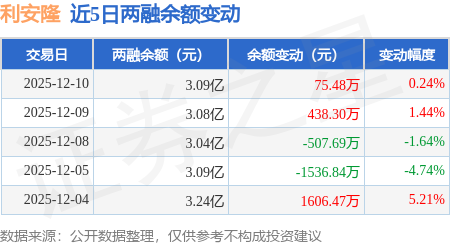 证券之星消息,12月10日,利安隆(300596)融资买入3200.22万元,融资偿还3128.25万元,融资净买入71.96万元,融资余额3.08亿元,近20个交易日中有11个交易日出现融资净买入。