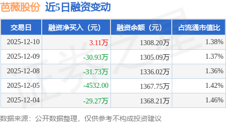 证券之星消息,12月10日,芭薇股份(920123)融资买入41.85万元,融资偿还38.74万元,融资净买入3.11万元,融资余额1308.2万元,近20个交易日中有11个交易日出现融资净买入。