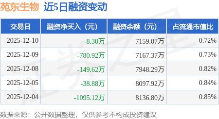 证券之星消息,12月10日,苑东生物(688513)融资买入272.28万元,融资偿还280.58万元,融资净卖出8.3万元,融资余额7159.07万元。