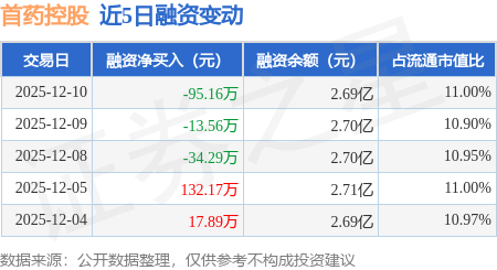 证券之星消息,12月10日,首药控股(688197)融资买入147.57万元,融资偿还242.73万元,融资净卖出95.16万元,融资余额2.69亿元。