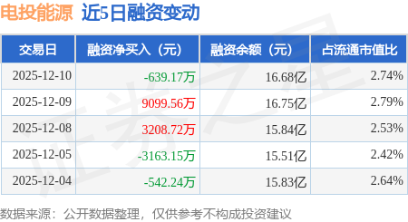 证券之星消息,12月10日,电投能源(002128)融资买入2530.59万元,融资偿还3169.77万元,融资净卖出639.17万元,融资余额16.68亿元。