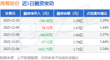 证券之星消息,12月10日,海看股份(301262)融资买入1542.02万元,融资偿还2309.0万元,融资净卖出766.98万元,融资余额1.59亿元。