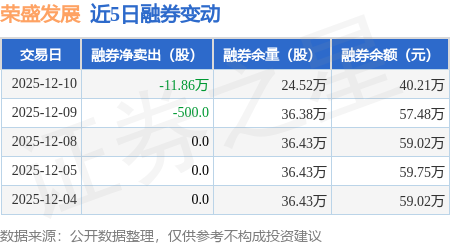 证券之星消息,12月10日,荣盛发展(002146)融资买入2614.54万元,融资偿还3690.79万元,融资净卖出1076.25万元,融资余额2.53亿元。