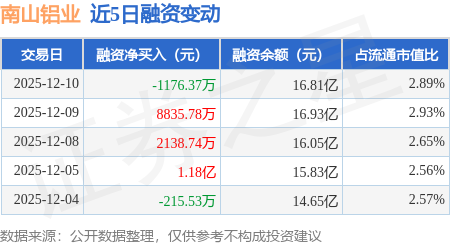 证券之星消息,12月10日,南山铝业(600219)融资买入1.33亿元,融资偿还1.45亿元,融资净卖出1176.37万元,融资余额16.81亿元。