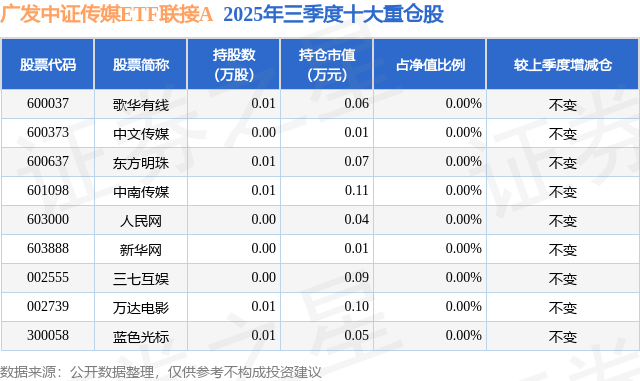 广发中证传媒ETF联接A的前十大重仓股如下:
