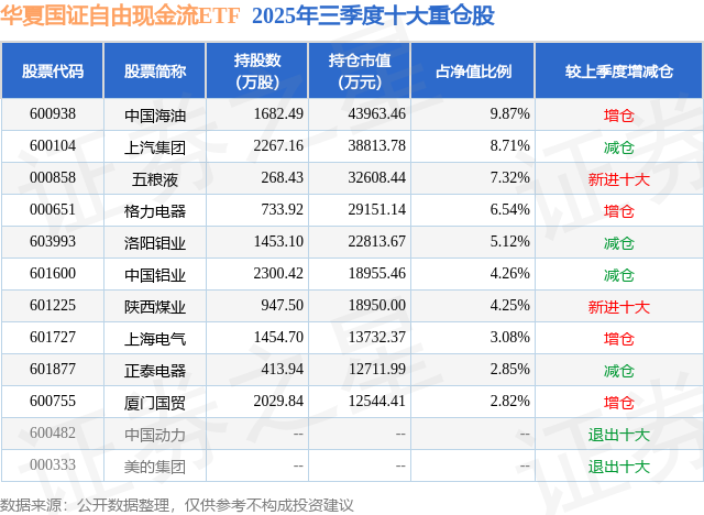 根据2025基金Q3季报公募基金重仓股数据,重仓该股的公募基金共23家,其中持有数量最多的公募基金为华夏基金的华夏国证自由现金流ETF。华夏国证自由现金流ETF目前规模为44.54亿元,最新净值1.1838(12月10日),较上一交易日上涨0.45%。该公募基金现任基金经理为杨斯琪。杨斯琪在任的基金产品包括:华夏中证红利低波动ETF,管理时间为2024年6月11日至今,期间收益率为10.95%;华夏中证汽车零部件主题ETF,管理时间为2024年6月11日至今,期间收益率为50.78%;华夏中证红利低波动ETF发起式联接A,管理时间为2024年7月2日至今,期间收益率为10.97%;华夏中证全指运输ETF发起式联接A,管理时间为2024年11月7日至今,期间收益率为0.6%。