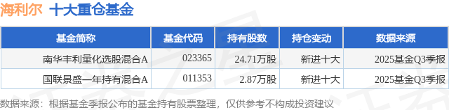 根据2025基金Q3季报公募基金重仓股数据,重仓该股的公募基金共2家,其中持有数量最多的公募基金为南华基金的南华丰利量化选股混合A。南华丰利量化选股混合A目前规模为0.38亿元,最新净值1.1146(12月10日),较上一交易日上涨0.32%。该公募基金现任基金经理为黄志钢 康冬。黄志钢在任的基金产品包括:南华丰汇混合A,管理时间为2022年3月5日至今,期间收益率为86.25%;南华丰元量化选股混合A,管理时间为2024年1月23日至今,期间收益率为39.34%;南华丰睿量化选股混合A,管理时间为2024年11月5日至今,期间收益率为17.57%;康冬在任的基金产品包括:南华中证杭州湾区ETF联接A,管理时间为2023年8月30日至今,期间收益率为6.35%;南华中证杭州湾区ETF,管理时间为2023年8月30日至今,期间收益率为6.78%;南华丰元量化选股混合A,管理时间为2024年11月9日至今,期间收益率为17.59%;