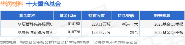 根据2025基金Q3季报公募基金重仓股数据,重仓该股的公募基金共2家,其中持有数量最多的公募基金为华夏基金的华夏智胜先锋股票C。华夏智胜先锋股票C目前规模为19.12亿元,最新净值1.5333(12月10日),较上一交易日下跌0.09%,近一年上涨27.46%。该公募基金现任基金经理为孙蒙。孙蒙在任的基金产品包括:华夏智胜价值成长A,管理时间为2020年3月17日至今,期间收益率为135.64%;华夏中证500指数增强A,管理时间为2020年4月17日至今,期间收益率为122.36%;华夏安泰对冲策略3个月定开混合,管理时间为2020年6月5日至今,期间收益率为22.43%;华夏中证500指数智选增强A,管理时间为2021年8月11日至今,期间收益率为28.6%。