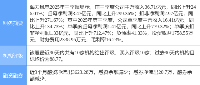 今日海力风电(301155)涨8.43%,收盘报83.5元。