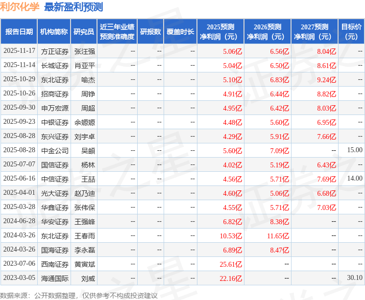 以下是详细的盈利预测信息: