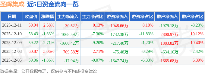 证券之星消息,截至2025年12月11日收盘,圣晖集成(603163)报收于59.94元,上涨2.58%,换手率4.01%,成交量4.01万手,成交额2.41亿元。