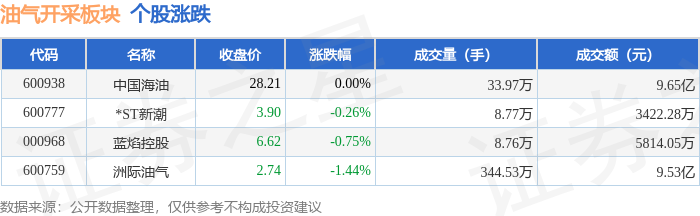 证券之星消息,12月11日油气开采板块较上一交易日下跌0.22%,洲际油气领跌。当日上证指数报收于3873.32,下跌0.7%。深证成指报收于13147.39,下跌1.27%。油气开采板块个股涨跌见下表: