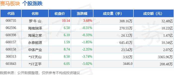 证券之星消息,12月11日赛马板块较上一交易日下跌0.86%,*ST正平领跌。当日上证指数报收于3873.32,下跌0.7%。深证成指报收于13147.39,下跌1.27%。赛马板块个股涨跌见下表: