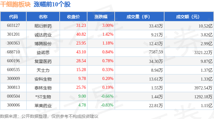 证券之星消息,12月11日干细胞板块较上一交易日下跌0.64%,南京新百领跌。当日上证指数报收于3873.32,下跌0.7%。深证成指报收于13147.39,下跌1.27%。干细胞板块个股涨跌见下表: