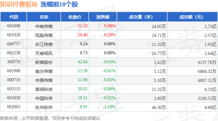 证券之星消息,12月11日知识付费板块较上一交易日下跌1.12%,读客文化领跌。当日上证指数报收于3873.32,下跌0.7%。深证成指报收于13147.39,下跌1.27%。知识付费板块个股涨跌见下表: