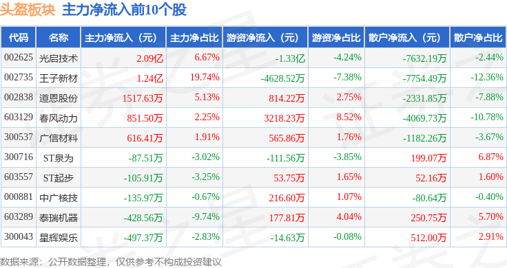 从资金流向上来看,当日头盔板块主力资金净流出3.94亿元,游资资金净流入5244.12万元,散户资金净流入3.42亿元。头盔板块个股资金流向见下表: