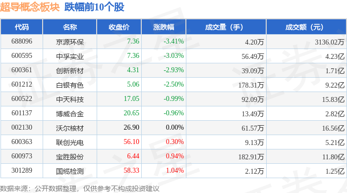 从资金流向上来看,当日超导概念板块主力资金净流入13.16亿元,游资资金净流出6.24亿元,散户资金净流出6.92亿元。超导概念板块个股资金流向见下表: