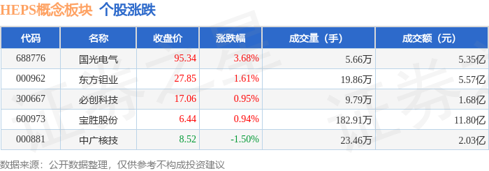 证券之星消息,12月11日HEPS概念板块较上一交易日上涨1.38%,国光电气领涨。当日上证指数报收于3873.32,下跌0.7%。深证成指报收于13147.39,下跌1.27%。HEPS概念板块个股涨跌见下表: