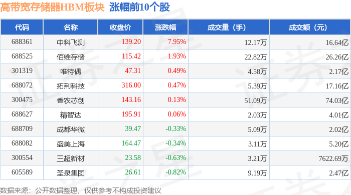 从资金流向上来看,当日高带宽存储器HBM板块主力资金净流出9.25亿元,游资资金净流入5.12亿元,散户资金净流入4.13亿元。高带宽存储器HBM板块个股资金流向见下表:
