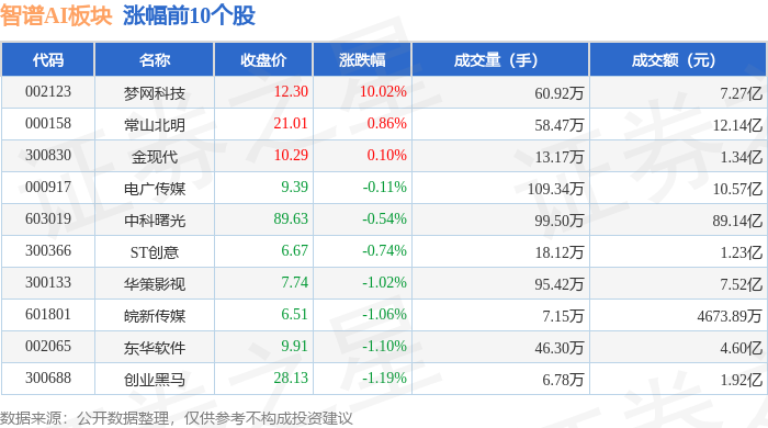 证券之星消息,12月11日智谱AI板块较上一交易日下跌1.58%,思美传媒领跌。当日上证指数报收于3873.32,下跌0.7%。深证成指报收于13147.39,下跌1.27%。智谱AI板块个股涨跌见下表: