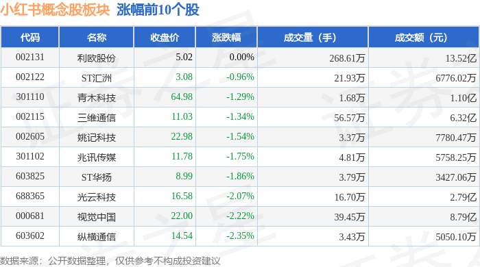 从资金流向上来看,当日小红书概念股板块主力资金净流出15.01亿元,游资资金净流出331.68万元,散户资金净流入15.05亿元。小红书概念股板块个股资金流向见下表:
