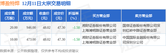 证券之星消息,12月11日博盈特焊发生大宗交易,交易数据如下:
