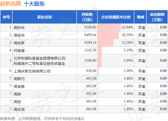 根据起帆电缆2025年三季报公布的十大股东详情如下:
