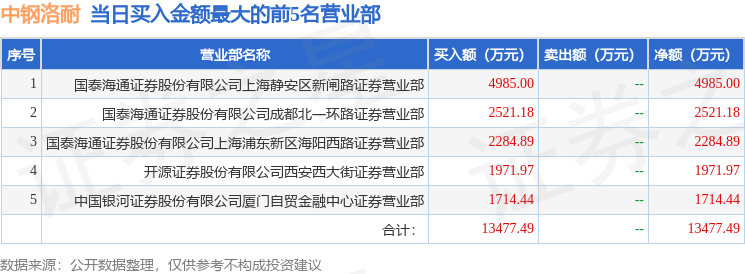 证券之星消息,沪深交易所2025年12月11日公布的交易公开信息显示,中钢洛耐(688119)因有价格涨跌幅限制的日收盘价格涨幅达到15%的前五只证券登上龙虎榜。此次是近5个交易日内第1次上榜。