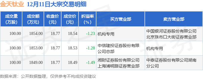 证券之星消息,12月11日金天钛业发生大宗交易,交易数据如下: