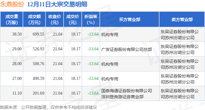 证券之星消息,12月11日永鼎股份发生大宗交易,交易数据如下: