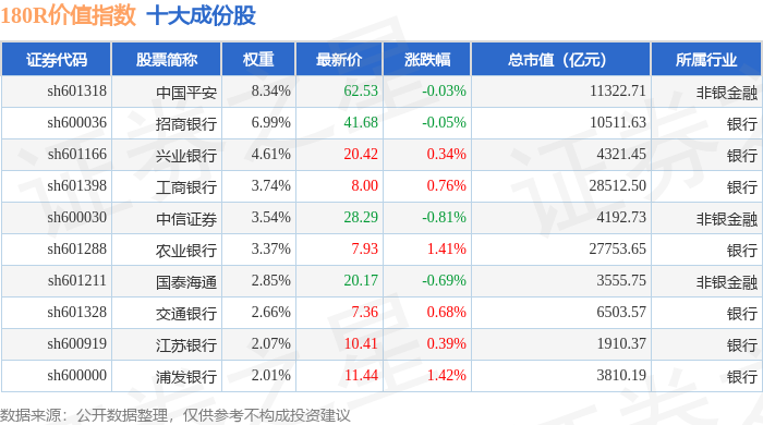 证券之星消息,12月11日,180R价值(000031)指数报收于3202.36点,跌0.3%,成交1381.21亿元,换手率0.34%。当日该指数成份股中,上涨的有37家,东方电气以3.06%的涨幅领涨,下跌的有87家,工业富联以4.46%的跌幅领跌。