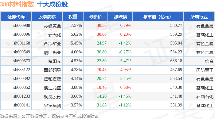 证券之星消息,12月11日,380材料(000105)指数报收于4997.97点,跌0.7%,成交199.0亿元,换手率1.51%。当日该指数成份股中,上涨的有10家,金晶科技以5.79%的涨幅领涨,下跌的有39家,东阳光以5.47%的跌幅领跌。
