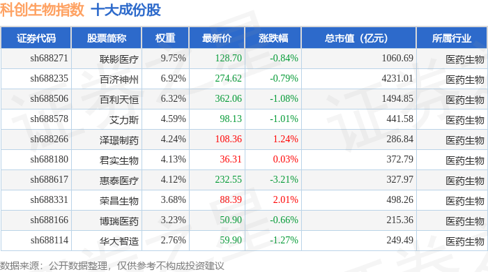 科创生物(000683)指数十大成份股详情如下: