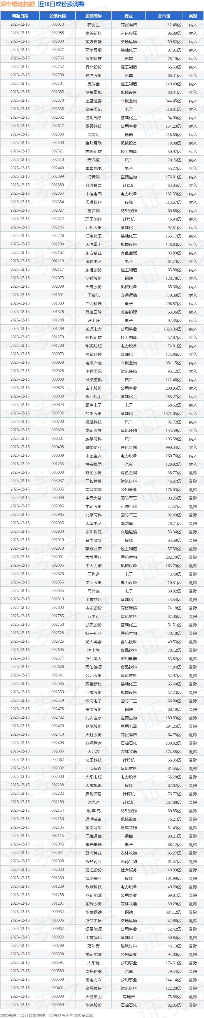近10日内深市精选(399013)指数成份股做了调整,新纳入了53只股票,剔除了64只股票。
