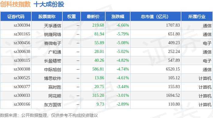 创科技(399276)指数十大成份股详情如下: