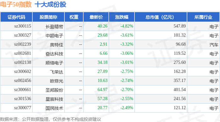 近10日内电子50(399281)指数成份股做了调整,新纳入了3只股票,剔除了3只股票。