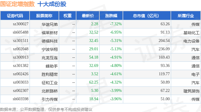 证券之星消息,12月11日,国证定增(399428)指数报收于4086.82点,跌1.58%,成交547.16亿元,换手率4.56%。当日该指数成份股中,上涨的有17家,永辉超市以6.12%的涨幅领涨,下跌的有83家,华谊兄弟以7.32%的跌幅领跌。