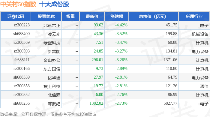 资金流向方面,中关村50(399423)指数成份股当日主力资金净流出合计13.75亿元,游资资金净流入合计3.73亿元,散户资金净流入合计10.02亿元。成份股资金流向详情见下表: