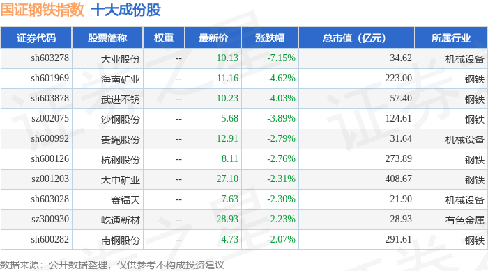 近10日内国证钢铁(399440)指数成份股做了调整,新纳入了3只股票。