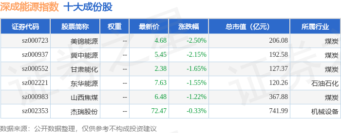 深成能源(399680)指数十大成份股详情如下: