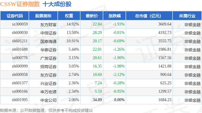 近10日内CSSW证券(399707)指数成份股做了调整,新纳入了1只股票。