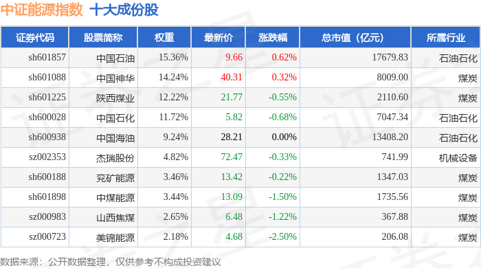 近10日内中证能源(399928)指数成份股做了调整,剔除了1只股票。
