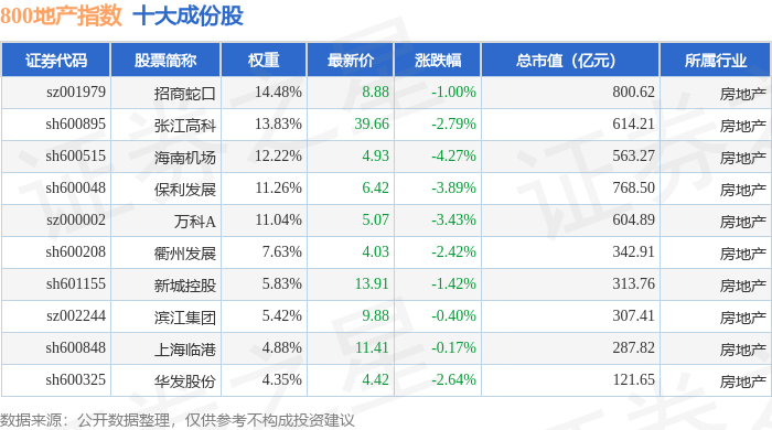 近10日内800地产(399965)指数成份股做了调整,剔除了2只股票。