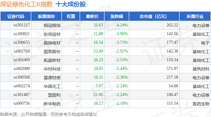 深证绿色化工R(470076)指数十大成份股详情如下: